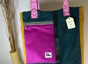 Creamos una tote estructurada, con combinación de colores vibrante y contraste de materiales para darle identidad propia.
